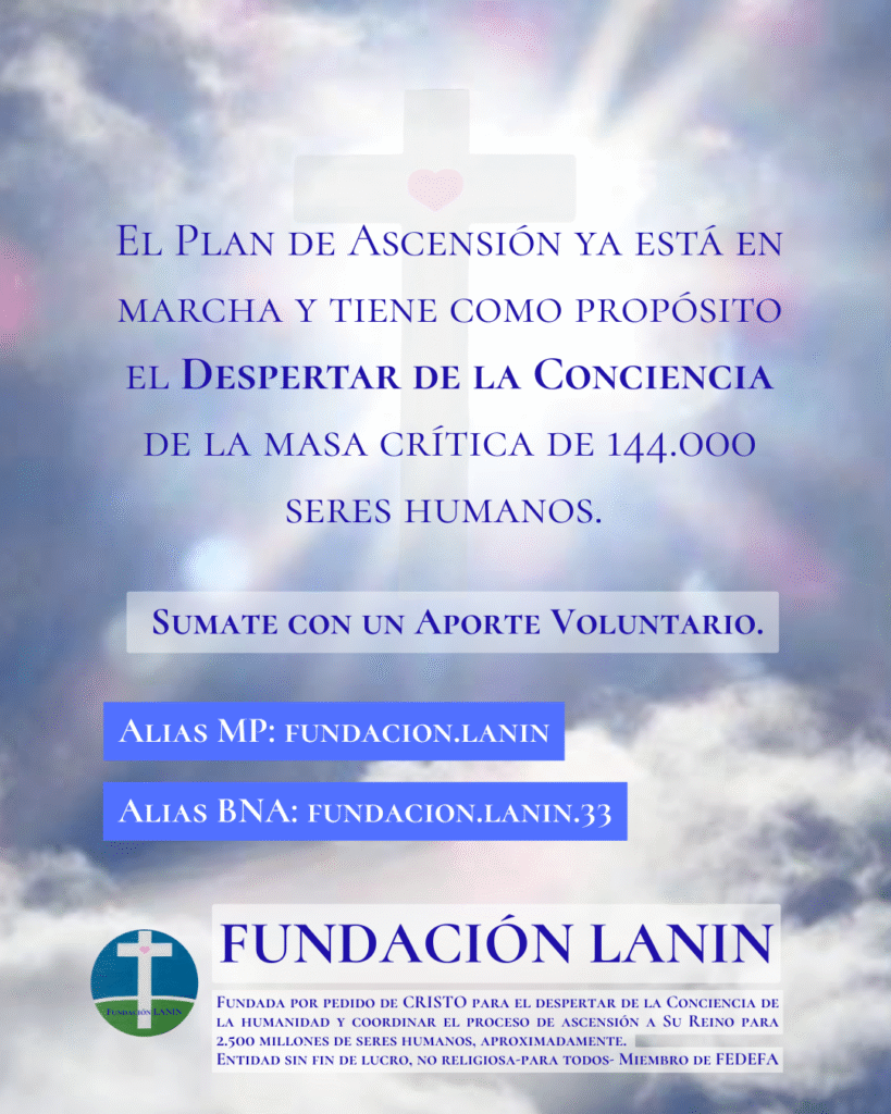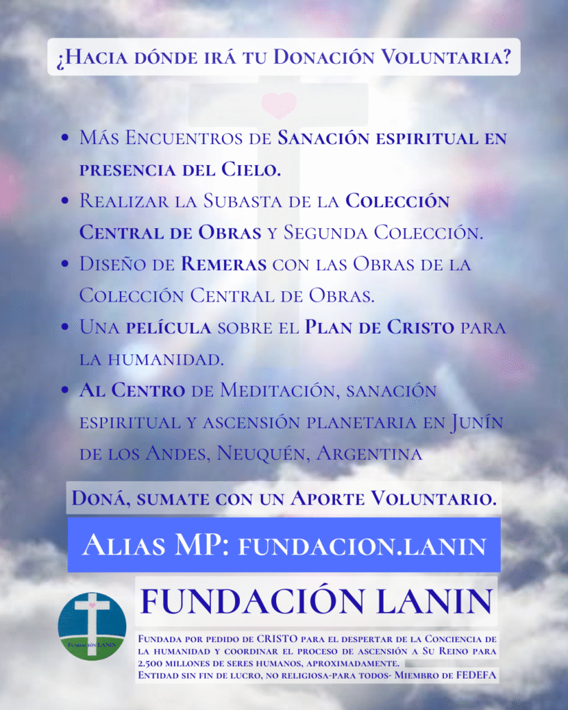 Cada aporte es Sagrado: permite materializar el Plan de Cristo en la Tierra y contribuye al Despertar de la Conciencia.
